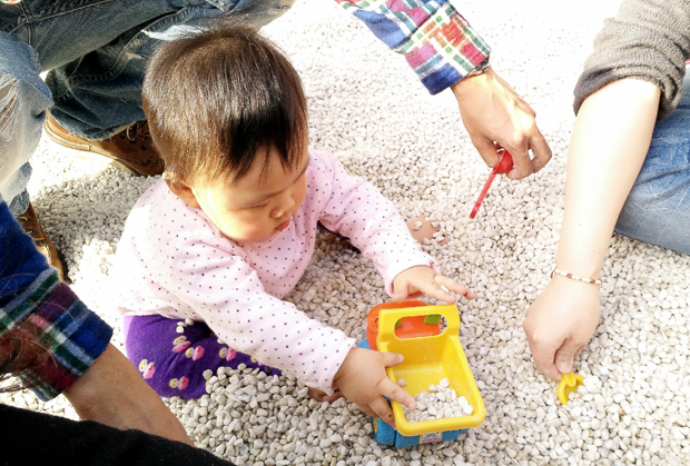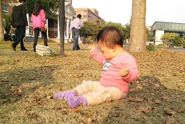 我記得小恰咪坐在草地上的時候,都會試著摸摸看,或拿起樹葉 Show 給大人們看,看到寶寶開心得意的樣子,真的很棒。後來回家感覺都變得好像很多話想要跟你分享,會覺得他們慢慢長大了。