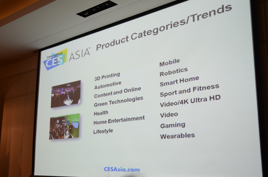 CES ASIA展出類別包含3D列印、家庭娛樂、互聯網應用、運動健身、工業機器人….等類別,此次較為特別的參展品牌為全球通訊社群軟體Twitter,由於中國對於Twitter軟體設有防火牆,在中國境內是無法正常使用,但他們看到了CES ASIA的機會,所以依然決定前往參加。