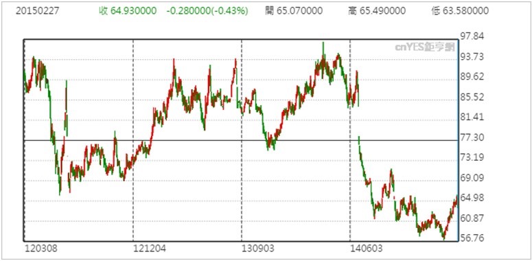 本月棉花價格觸底反彈,紐約棉花期貨履約價,從2015年1月30日報價59.36美元,上漲至2015年2月27日報價64.93美元(詳見【圖一】)。
