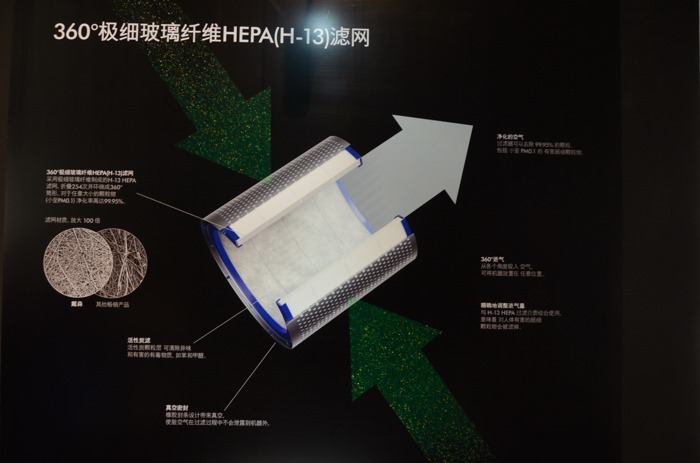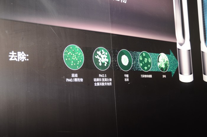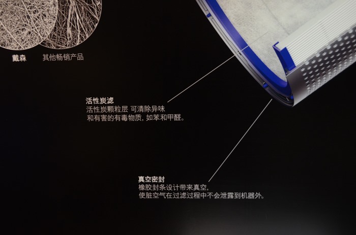 氣流倍增技術主管Dominic Mason 在專訪時指出,玻璃纖維濾網經折疊254次後形成極小縫隙,可捕捉極細的粒子,加上最內層碳纖維濾網,可去除空氣中的氣味。在未來是否會推出不同大小的機型,Mason表示比較機型大小,他們更重視潔淨度的表現,所以只要潔淨度有達到標準時才會推出。而在電漿或臭氧技術上,他們也積極地在研究,如果對產品有幫助的技術,也不排除加入其他技術。在風力部分,的確會隨著使用時間加長而降低,Mason說明除非在灰塵過多的工廠使用才會有明顯的差異,在一般家庭使用上,風力其實不會感受到不同。