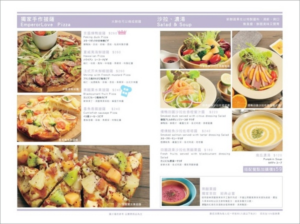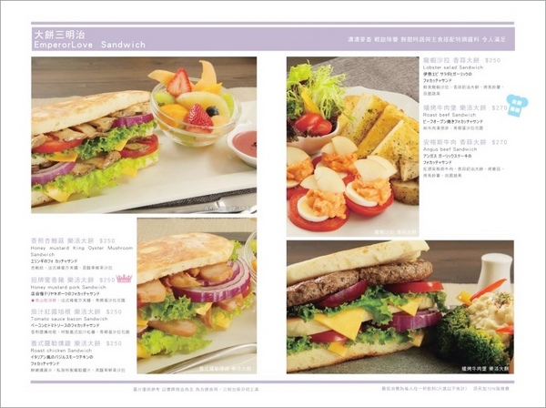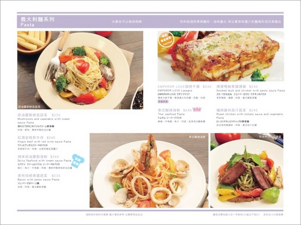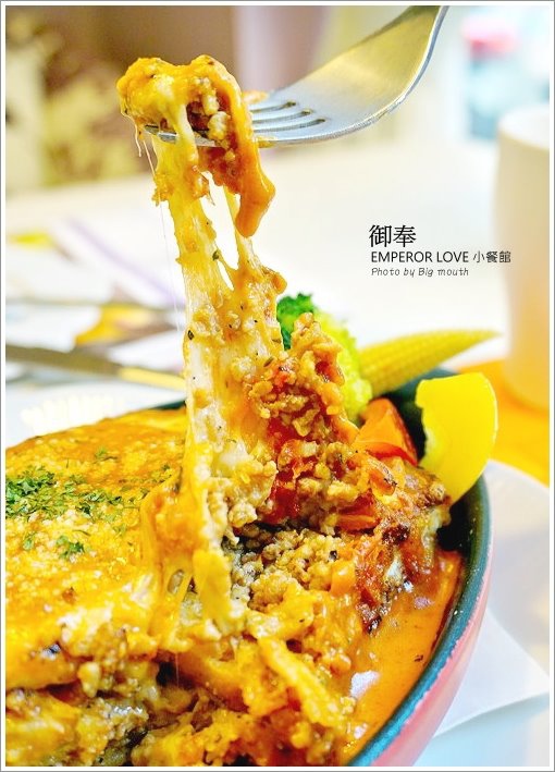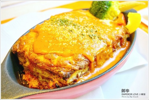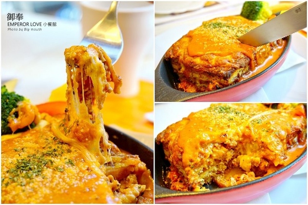 「EMPEROR LOVE御奉小餐館」的環境兼容中式與西式的建築美學,以虛實交錯的手法,搭配東西方元素的裝飾氛圍,整體用餐環境優雅舒適;餐點選擇多多,有各式茶品、 特調、義大利麵、三明治、早午餐、手作甜點、手作披薩、沙拉、濃湯等,將傳統大餅改良入菜,讓口感、視覺更為驚奇,像是這次品嘗的焗烤千層,吃起來口感軟 Q濕潤,鹹香酸甜,搭配義大利肉醬及香濃起司非常合拍啊!還有採用傳統大餅改良成法式大餅及大餅金磚製成的草莓季限定甜點,吃起來香、酥、軟、脆,外脆內 軟,帶有嚼勁,口感層次相當多元!甜點份量十足,搭配澎湃的新鮮草莓,微微酸甜,既華麗又美味!「EMPEROR LOVE御奉小餐館」淡雅寧靜的用餐空間,堅持用心的獨家食材,非常適合特殊節慶、三五好友、姊妹淘們來此聚會,相信會讓人留下深刻的美好回憶!