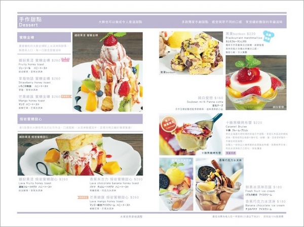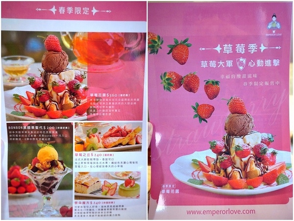 ▼接著就來看看菜單溜!冬末初春之際,最適合的就是來上一份草莓口味的幸福甜點啦!現在剛好是「御奉小餐館」的草莓季,特別推出四款草莓主題的甜點,每一樣看起來都好好吃啊!等等一定要來上一份嚐嚐!