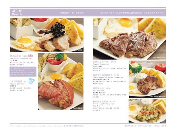 ▼以下就是菜單內容,選擇還不少,有各式茶品、特調、義大利麵、三明治、早午餐、手作甜點、手作披薩、沙拉、濃湯等,提供給各位捧友參考參考!特別的是這裡的餐點大部份都是使用小時候大餅製作而成的創意料理,讓大口更加期待惹啊!