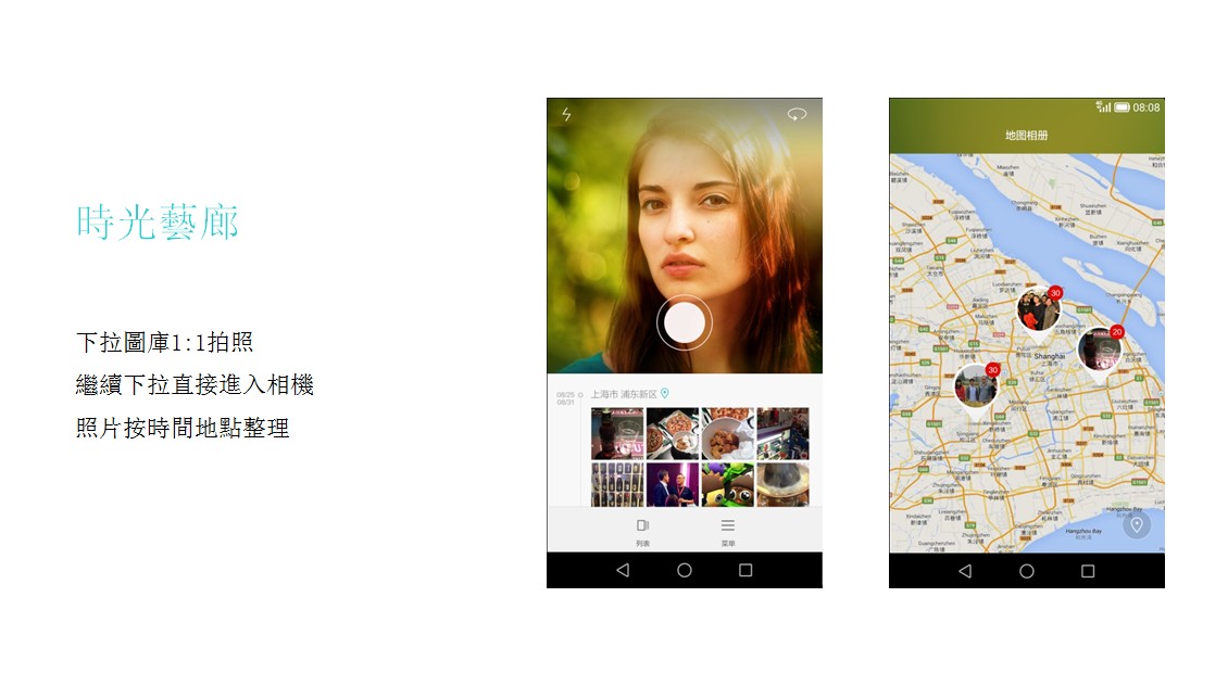 時光藝廊是個人很喜歡的功能,會將拍下的照片按時間地點整理,如打卡一樣清楚記錄曾去過的地方。