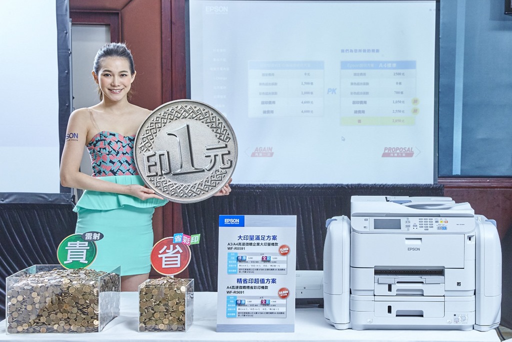 Epson突破舊有技術、顛覆傳統,用噴墨技術取代雷射機種,正式發表震撼歐洲日本市場的全球首部商用微噴影印機「Epson省彩印 微噴影印機」A3/A4兩款機型,更省、更智慧、也更環保。彩色影印單張只要1元起,帶領企業進入辦公室全彩輸出時代!