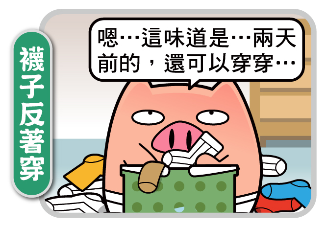 衣服都堆滿了才洗,襪子當然也不意外囉,當突然有事有活動有咩有帥哥要約時,打開櫃子卻一雙襪子也沒有…就會出現在衣服堆裡找出舊襪子反過來穿的情況。反正…也沒人會把你的腳抬起來聞吧!(但最怕去要脫鞋的餐廳)