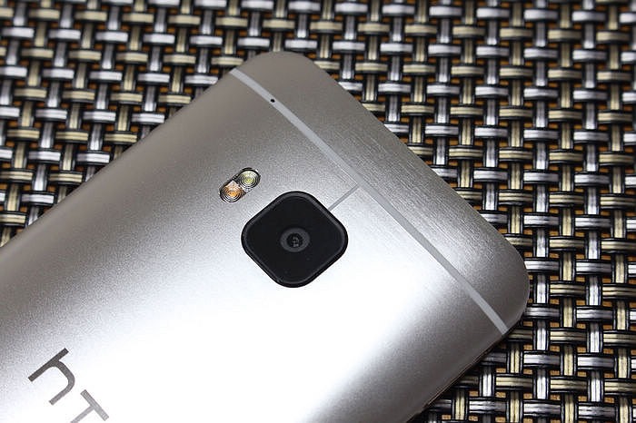 機身背面的鏡頭改成方形的2,000 萬畫素 BSI CMOS 主相機,畫素大幅提升,支援 F2.2 光圈與 27.8mm 廣角與4K UHD 錄影。比起M8的圓形鏡頭,感受上變得較為中性一點,鏡頭上具有抗刮的藍寶石水晶材質的鏡頭蓋來防護,無配置 M8有的景深鏡頭。旁邊的雙色溫 LED 補光燈不變。在厚度上多了 0.26mm,但這對握感來說仍無感。圓弧背蓋一直延伸至彎角,非常流暢有形。