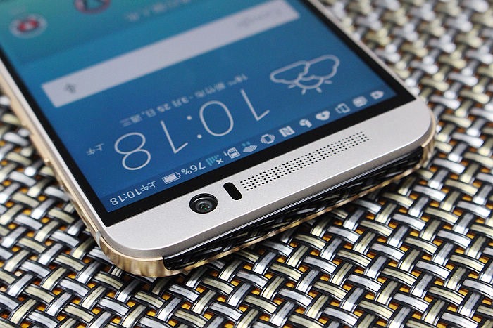 M9 仍具有紅外線遙控功能,可結合 Sense TV使用,M9 的紅外線傳輸槽收得較窄,此外原在機頂的電源鍵移置側邊,同眾多智慧型手機的設置。感應器左邊是 408 萬畫素 UltraPixel 前相機,適合自拍。
