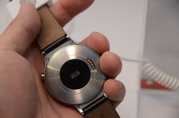 簡單看一下背面,可以看到相關的感測器,Huawei Watch 有運動感測以及心律偵測等功能。