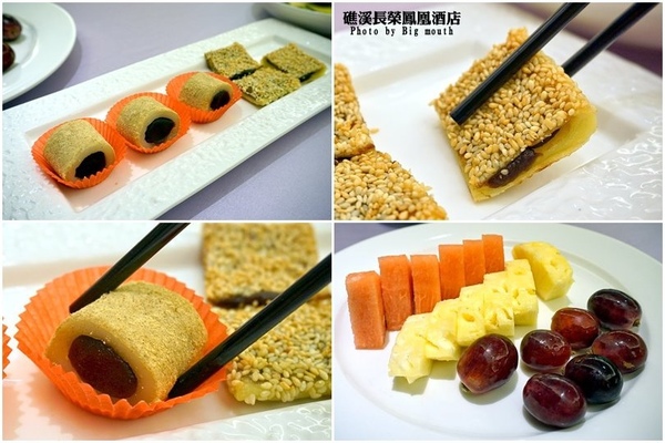 ▼ 京城四少(四選二)及皇城四季鮮盤,甜點我們選了驢打滾跟棗泥煎餅,驢打滾有點像是麻糬中間包著紅豆泥,外面再撒上黃豆粉,吃起來QQ軟軟的,帶點微為香 甜;棗泥煎餅則是現點現煎的,吃起來有棗泥與芝麻香氣,好吃又不油膩!皇城四季鮮盤則是季節水果溜,份量還不少,吃完一整個呈現飽呆的狀態啦!