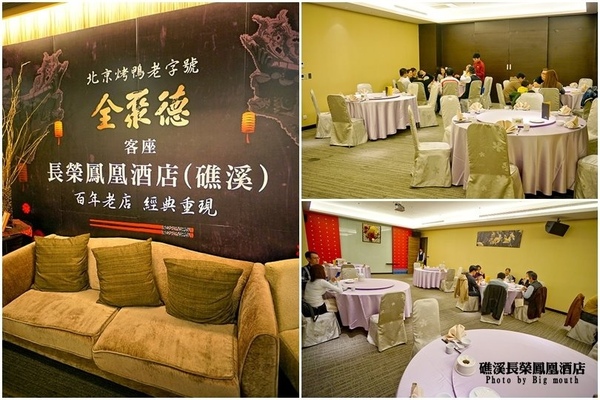 ▼ 來到長榮鳳凰酒店除了泡湯、住宿外,這次來最重要的事莫過於就是享用「全聚德烤鴨宴」惹!這次長榮鳳凰酒店特別與中國全聚德合作,從3/1~4/15維持 近46天的合作,讓台灣民眾也能大啖傳承百年的全聚德烤鴨!我們入住的當晚晚餐便是來到酒店三樓準備享用美味的烤鴨晚宴溜,還特別約了宜蘭好友共四人一同 來聚餐敘舊!門口還特別打造宮廷大門作為意象,感覺充滿濃濃東方味!