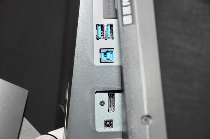 訊號輸入部分使用DisplayPort,資料可直接透過機上的USB HUB(2組 TypeA、1組 Type B),來和主機傳遞資料。
