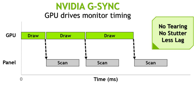 NVIDIA的G-SYNC技術,對於玩家來說只要購買G-SYNC顯示器,並搭配具有G-SYNC技術的GeForce顯示卡(G-SYNC顯卡列表),透過螢幕中所內建的G-SYNC模組,並在設定中啟用G-SYNC,就可開始享受搭配後遊戲順暢感與畫面的高品質。