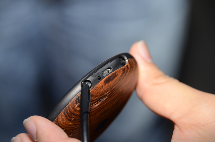 背面為木質的背蓋設計。