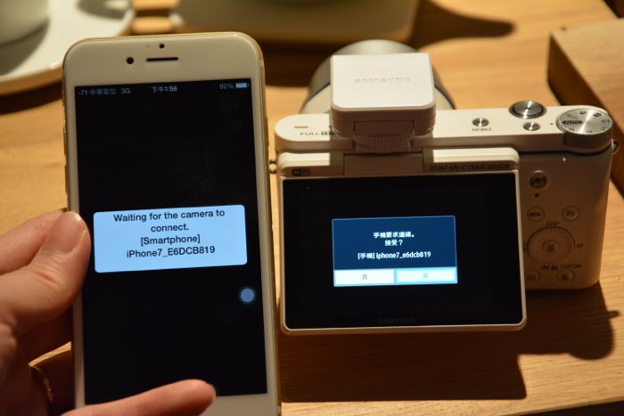 NX500 和 NX3300 一樣擁有全新藍牙配對功能,可以在第一次設定之後快速配對手機或平板,保持裝置互連狀態。具備 Wi-Fi 傳輸以及 NFC 功能的 NX500,讓使用者輕鬆透過內建軟體 Remote Viewfinder 遙控相機設定與拍攝、Mobile Link 讓相機與手機共享照片,且互連狀態下相機照片即拍即傳,立即能在手機或平板端接收與瀏覽。不過與 NX3300 不同的在於 NX500 的 NFC 位置是擺放在機身下方。