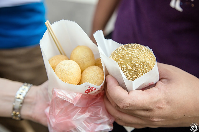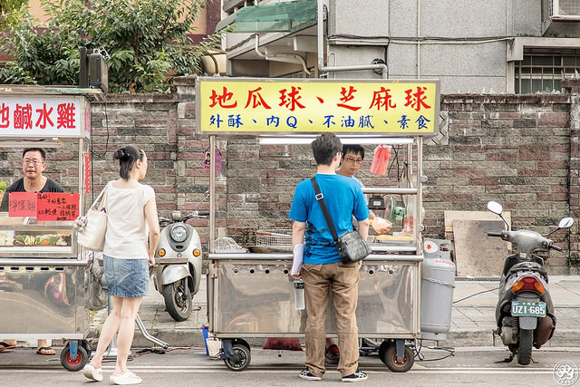 首先是這攤位於新明夜市後面入口的炸地瓜球,會先吃它完全是因為開的早,這攤的好處是比較不油、但口感也略乾,味道單薄了一點,後者芝麻球比較好一點。