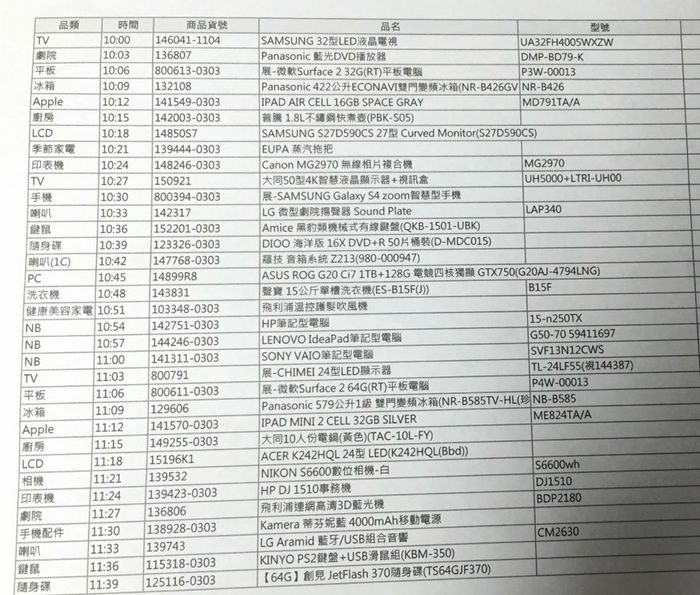 上述提到共有280種商品可搶,這裡也為大家搶先取得產品清單,讓各位有較充裕的時間物色喜歡的商品,請留意左邊第二欄的特價時間,全數產品特惠價格將在活動展開時一一揭曉,真的很刺激。