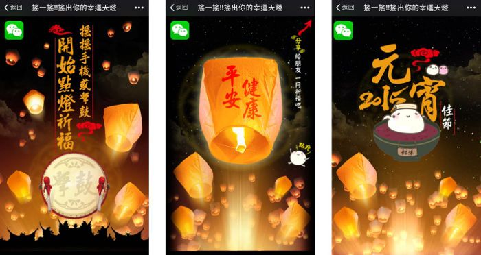 另外 WeChat 熱門加碼,明日起只要於 WeChat Team 官方帳號 (WeChat ID: WeChat) 中點擊「Chat好康」,選擇「幸運天燈」後,「搖一搖」手機或是點擊畫面中的天燈後,便能為你或是身邊的朋友點燈祈福喔!2015 和 WeChat 一起用最科技、環保的方式放天燈吧!