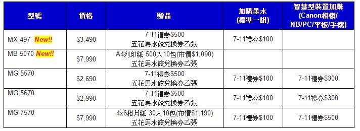 想把珍貴時光沖印出來好好保存,於春電展會場購買任一Canon PIXMA印表機,即加贈五花馬水餃兌換券乙張;現場購買Canon相機,任一廠牌智慧型裝置(手機/平板電腦),憑發票或購買明細,加購PIXMA 指定機種,直接加贈7-11禮券;購買全系列墨水2顆享有85折優惠(以低價者計,不適用墨水組合包)。