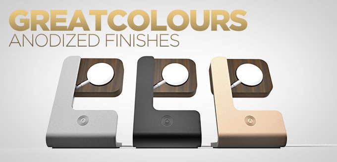 雖然 Apple Watch 自家有推出充電基座,但是仍有人想一起來搶食這塊市場,專門生產3C配件的公司Aerios 公司試圖擺脫廉價的塑料配件,在2014年推出 LG G Watch 、G Watch R充電基座後,在2015年玩得更大,這回要推出 Apple Watch 充電基座要來挑戰果粉的品味!