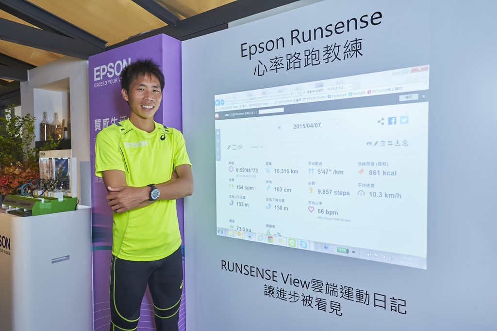 看中台灣新生代跑者實力,Epson邀請今年屢屢突破紀錄的台灣馬拉松金牌好手 – 何盡平擔任2015 Runsense新品代言人,領先全台跑友體驗Runsense 心率路跑教練SF-810V。針對專業跑者需求而進化的SF-810V除了提供更便利的自主訓練,拋開心跳帶的革命性升級,也讓何盡平印象深刻,他指出:「過往的訓練裝置需配戴心跳帶,對頻繁訓練、參賽的專業跑者來說,心跳帶的摩擦很不舒適,也增加了替換織帶的耗材花費,導致大部分選手放棄心率監測這項體能
