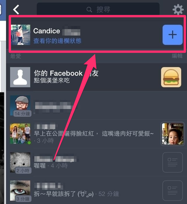 只要點進去右側的欄位就可以看到好友們最近 12 小時內發佈的塗鴉牆訊息,而我們還可以透過 ” + ” 來為自己更新邊欄狀態。