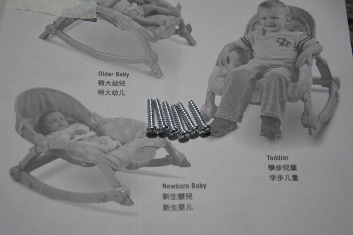 “其實安撫椅只需要鎖上6個螺絲,其他的安裝只要扣上去就可以了!”…… 喂~~~有沒有這麼簡單!!!?!?