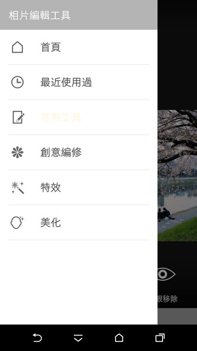 Sense 7 較有變化的是新增多種照片編輯工具,且相片編輯工具會將常用與最近使用過的工具拉出,不需在多種照片編輯工具中花時間翻找。