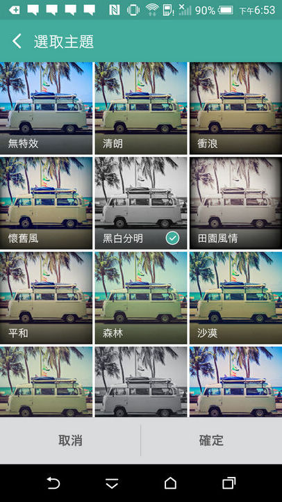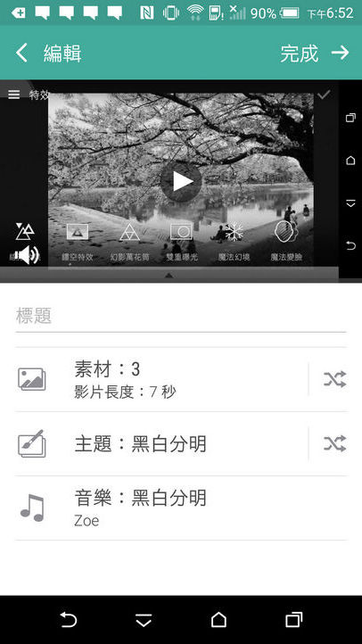 套用後這些照片都會擁有固定的主題與音樂,這些照片串一起後就成了主題影片。