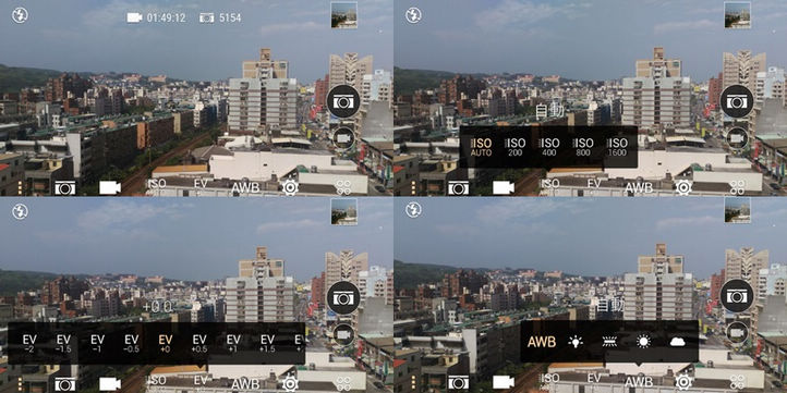 全新 Sense 7 版本 在拍照介面增加散景、新增兩種選單。新增是供用戶新增自己常用的拍照模式,需替換時可刪除,未來也將提供外掛模組讓用戶可拍攝 DNG、RAW 檔。