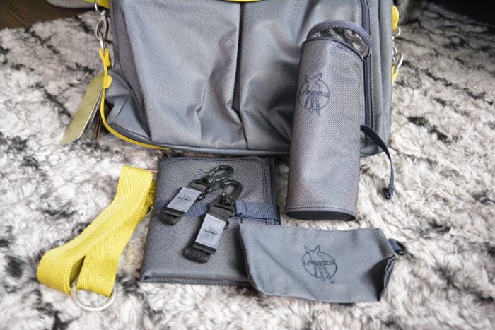 功能性方面也是他們最重視的特色之一,共有著六個包內夾層與暗袋、可以放化妝品、面紙或是紗布巾的隨身拉鍊袋,還有可以兼具保溫保冷的奶瓶袋與帶寶寶外出絕對不能少的防水尿布墊。