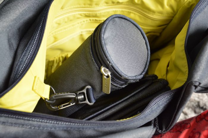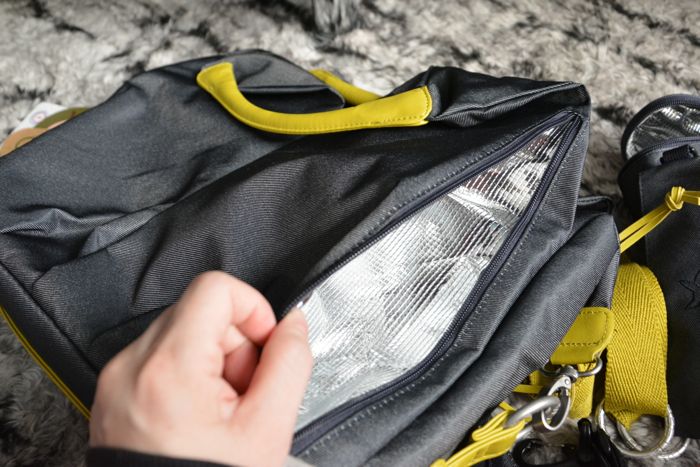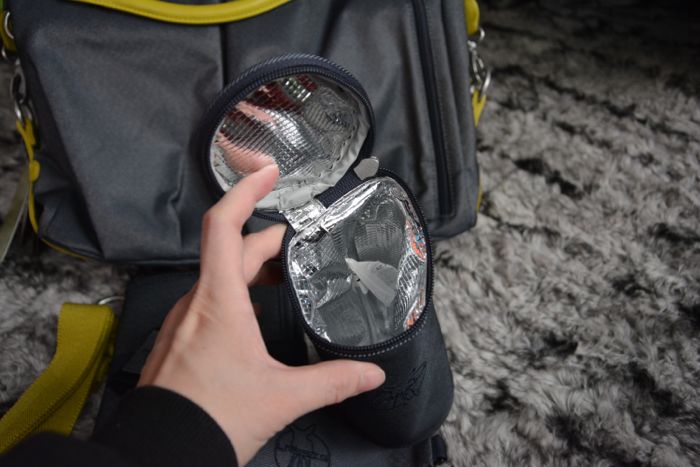 外側也有四個袋子,讓我們可以隨手放手機或是鑰匙等會隨時需要拿取的小物。不過側邊也設計了能夠保冷保溫的暗袋,讓不管是集奶袋或是需要保冷的東西也可以存放在這裡。