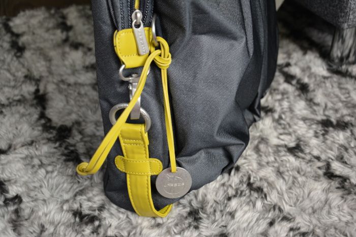 一旁的 lassig 招牌圓形 logo 也使用綁帶的方式自然垂墜一旁來做點睛之效,縫線方面也顯得極為牢固。根據網路上資料查詢, lassig 還得到紅點設計大獎的肯定,材質方面更是用安全無毒與環保可重複利用的材質與有機棉。