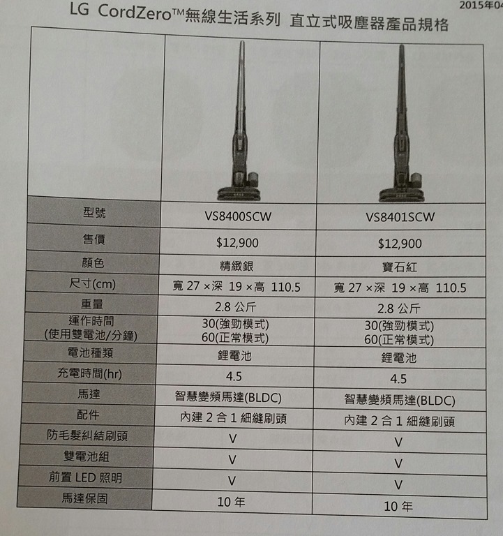 另一款推出的無線產品是 LG CordZero 直立式吸塵器,使用 LG Smart Inverter Motor 智慧變頻馬達,並使用高容量馬達,單顆電池最高可使用 30 分鐘,強力模式下可使用 20 分鐘。