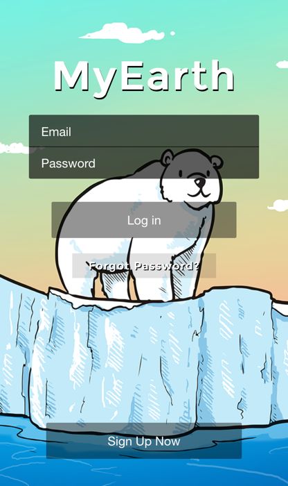 這款 “MyEarth – Track your carbon savings” 在下載後便能看見可愛的北極熊站在冰原上方,我們只要透過 e-mail 就能設定帳號候開始使用。