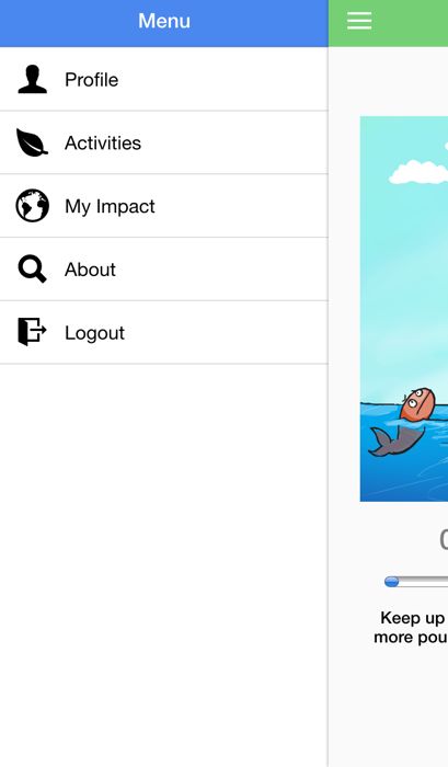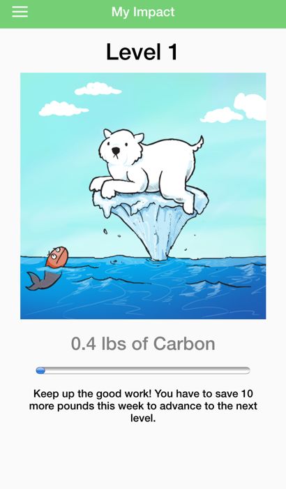 “My Impact” 則是一種救北極的概念,在第一階的北極熊只有一小塊的冰塊可以讓他屈在上頭,隨著我們日積月累的節能減碳後,慢慢的北極熊就可以像剛剛剛進 app 時的畫面一樣,昂然的站在一大塊冰原上方!