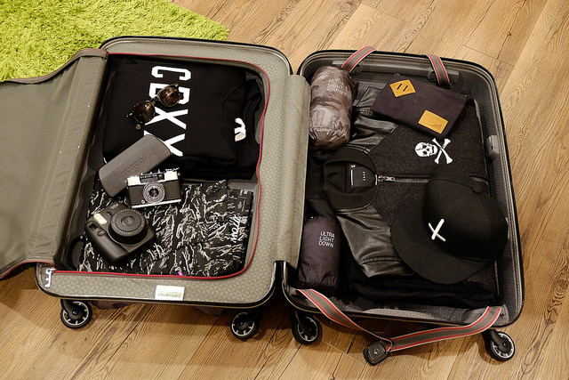3月的日本氣候仍偏涼,因此還是以攜帶冬季衣物為主,5天的衣物及必備用品以這咖25吋的行李箱來說綽綽有餘,拉鍊隔層建議可放上衣、褲子以及一些小物,避免託運行李時被搞得一團亂,束環帶則放較厚重的衣物或不容易散落的物品,這樣大概只放了6成滿,回國的時候多餘空間還能塞一些歐咪呀給。