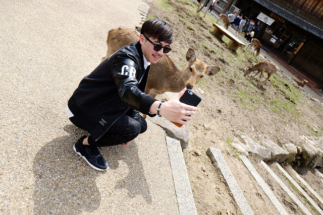9. 沒有極限的男人與沒有極限的小鹿自拍,而且小鹿有看鏡頭。