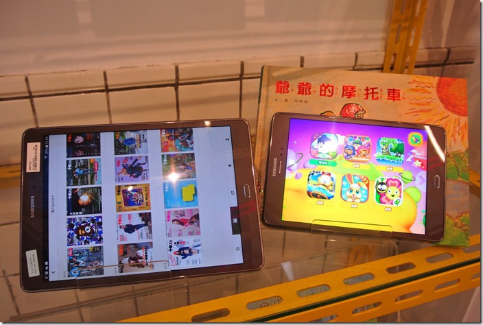 最後是三星電子發表了他們家第一款搭載 S Pen 的入門平板- Galaxy Tab A,外觀時尚氣質,厚度才 7.5 mm,使用 Android 5.0 作業系統、500 萬畫素自動對焦主鏡頭以及 200 萬畫素前鏡頭、有 Micro USB 連接埠以及 3.5mm 耳機孔,而且是三星首款搭載 64 位元四核心處理器的平板,推出 8 吋及 9.7 吋兩種規格。這款 Galaxy Tab A 主打剛使用平板的人,大家都能輕鬆上手!而且內建了一款家長能夠與孩子相處互動的 App - KidsTime,可以讓孩子們可以遊戲、聽童書!家長還可以輕鬆控制孩子使用平板電腦的時間。更棒的是家長也能夠自行錄有聲書給孩子聽,讓孩子使用時,彷彿家長就在身旁陪伴著呢!預計於 5 月初在全台三星智慧館及各大通路上市。
