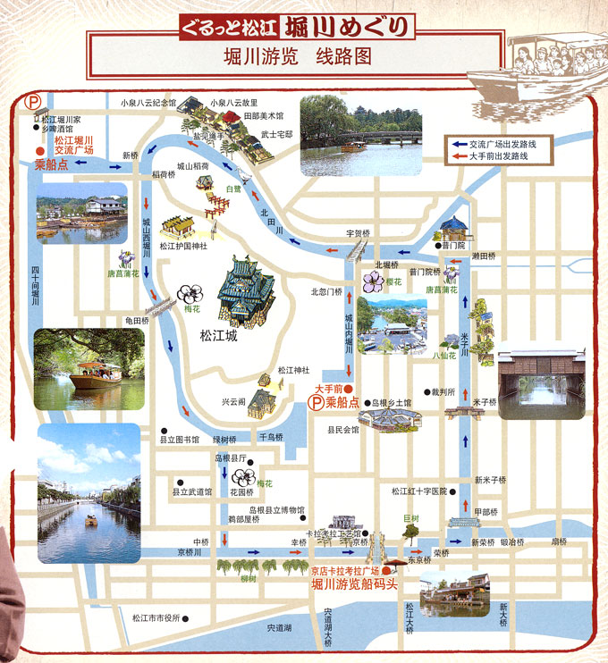 松江城崛川遊船官網:http://www.matsue-horikawameguri.jp/,(有簡體中文)