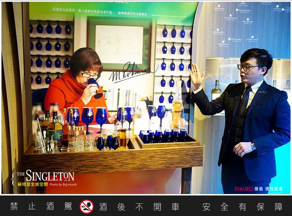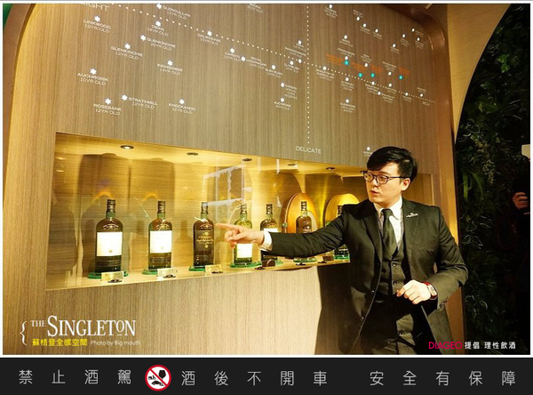 ▼ 接著導覽人員會帶我們了解蘇格登品牌的歷史發展,並簡單介紹首席調酒師Maureen Robinson,聽完介紹才知道,原來她不僅是蘇格蘭當代第一位女性調酒師,也是現今少數女性威士忌調酒師之一,藉著她的絕佳嗅覺天賦,與36年的豐富 經驗,經過7年口感鑽研與3倍曠時選桶,才創作出這款為台灣人量身打造的<蘇格登大師精選>,每瓶瓶身皆烙印上大師簽名,象徵這是大師生涯的 代表作!