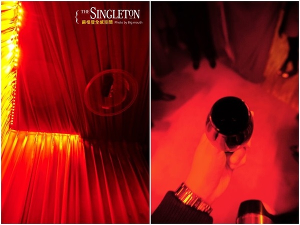 ▼最後來到名為絲綢之順的空間中,這個空間以大紅的布幕搭配熱情的音樂,讓人聯想到酒吧及火熱的象徵,在這裡品嘗到的<蘇格登大師精選>有一種糖漬水果、蜜餞的甜味,彷彿熱戀般的男女,濃甜順口!