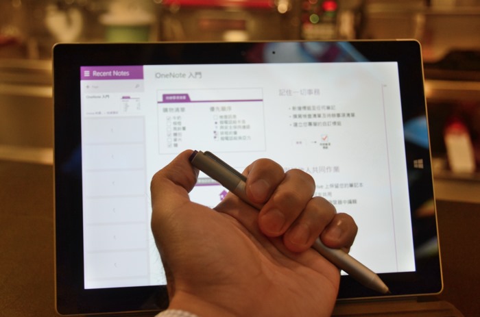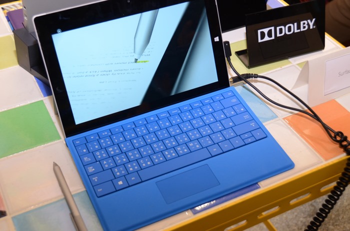 台灣微軟 PM 表示,Surface 3 具有四大特色,第一是具有 10.8 吋的 Full HD Plus 觸控螢幕與杜比音效前置立體聲喇叭,讓平板也能有絕佳的影音享受;第二是可搭配磁吸式鍵盤保護蓋與三段式支架,並且具有標準尺寸 USB 3.0 與 mini DisplayPort 視訊輸出,讓平板也可媲美筆記型電腦;第三則是支援完整的 Windows 8.1 與 完整的 Office,讓平板也可如筆電般的正常工作與遊戲;最後則是 N-Trig 手寫筆,讓書寫接近真實筆觸外,並支援防手掌誤觸功能,在書寫時也可將手掌放於平板上,用最自然的方式進行書寫。