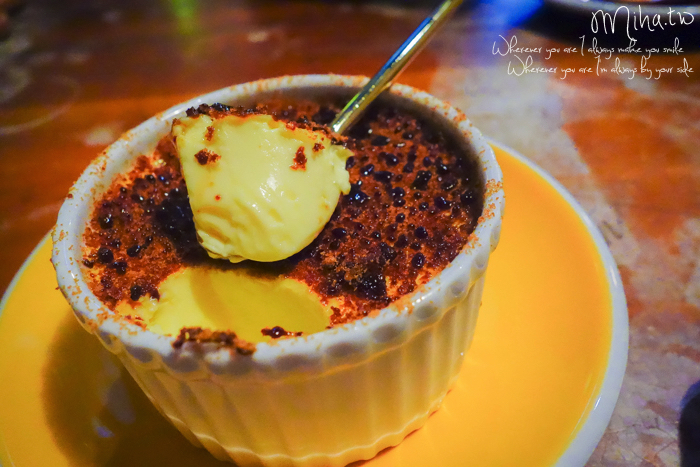 上頭用的居然是黑糖,更香也更養身,我覺得比傳統脆糖的烤布蕾好吃,挖開有淡淡的蛋香、奶香,襯著黑糖香氣,好好吃!!!