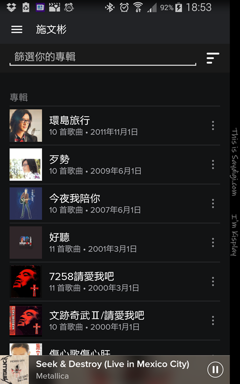 進入專輯後,可以看到曲目與演唱人,還有專輯的封面,好了,就只有這樣了。
