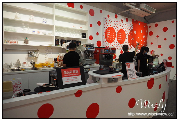 Wisely到現在為止,一直無緣登上瀨戶內海的直島去看草間彌生著名的南瓜,對此感到相當地遺憾,不過之前前往松本市時卻曾造訪過『草間彌生美術展』,所以倒還算是滿感動的!而這回的展出並沒有在台北舉行,之前的高雄與台中也沒有時間去看,所以只好到華山文創園區的4/30-9/30期間限定咖啡店來朝聖一番。