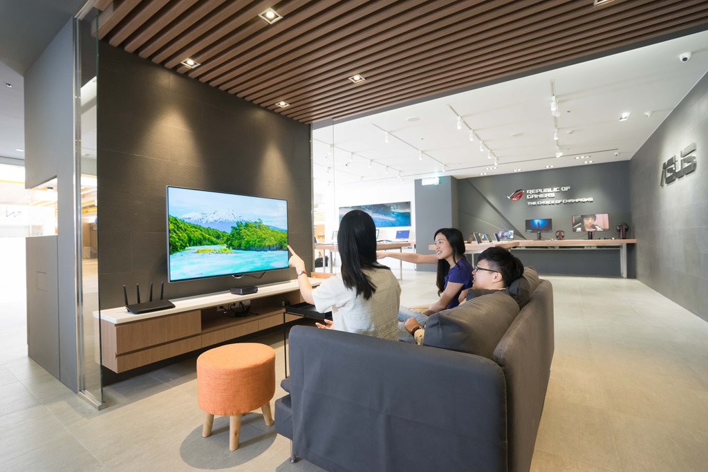 全店以「Zensation」為設計基調,帶入溫柔敦厚的石系、木系等居家佈置常用的色彩,將科技產品親切並自然地融入生活氛圍,為來店的消費者營造奢華眾享的體驗環境。ASUS體驗店將包含展示、體驗、銷售與VIP教學/聚會等數項功能,規劃完整的平板、手機、穿戴裝置、筆電、AIO以及電競展示區,最新、最熱賣以及最具華碩經典個性的全系列產品皆可在此體驗選購,另外店中亦規劃設計故事展示牆,將不定期更換展品內容,讓消費者可以認識每件華碩產品從誕生到成品,之中的設計歷程與細節用心。