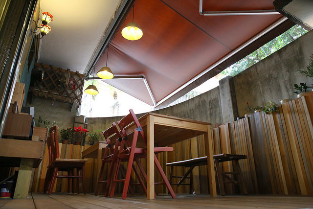 原本從事設計工作的店主人,一手打造出外兒小館的空間,前院以大量木作營造出溫暖的質感。