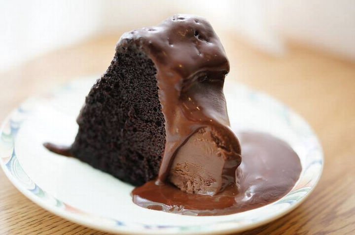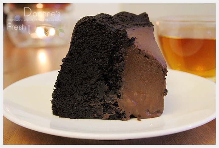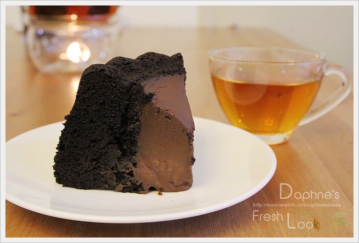 蛋糕體含有大量黑巧克力,比較建議切片配或黑咖啡品嚐,一次不要切太厚。