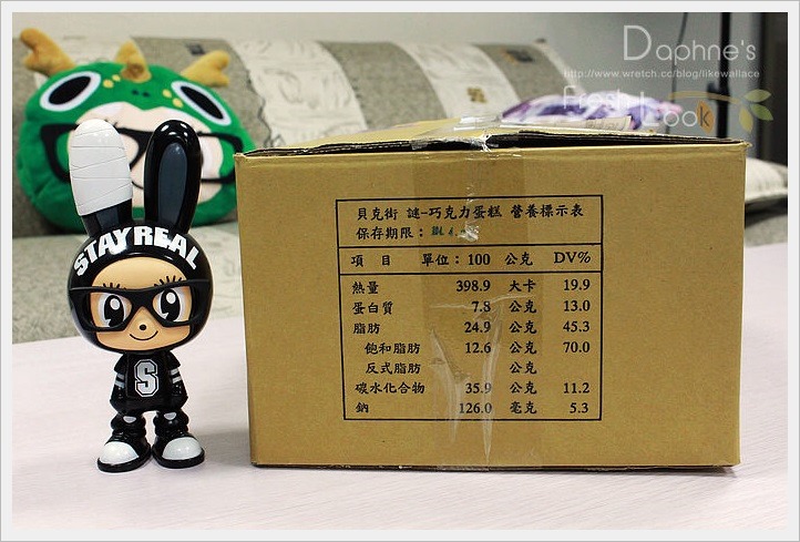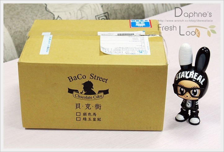 蛋糕寄來時,謹慎的以紙箱包裝好,外箱的蛋糕名稱也謎樣得讓人摸不著頭緒呀!